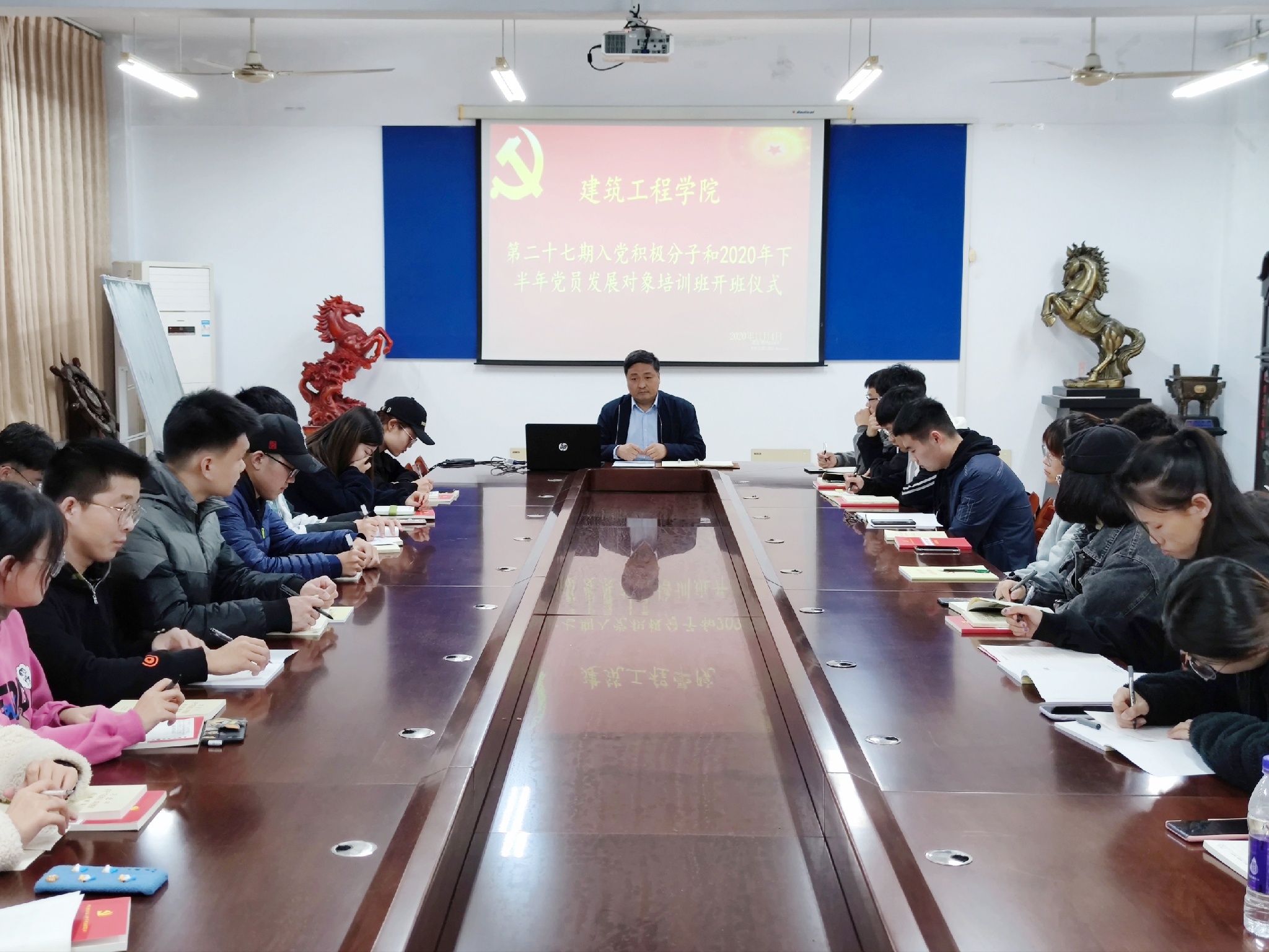 11月4日,bevictor1946韦德官网于工程楼会议室举行第二十七期入党积极分子和2020年下半年党员发展对象培训班开班仪式。会议由公司党委书记唐传成主讲,辅导员林鑫主持,第二十七期入党积极分子和2020年下半年党员发展对象参加。