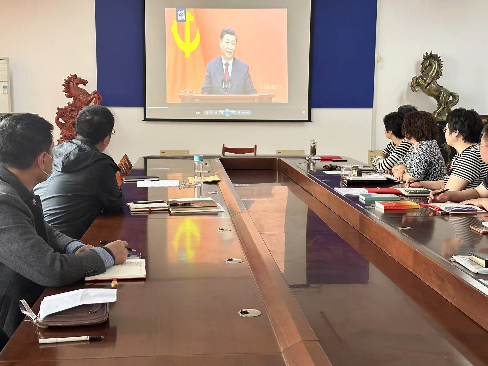 随后,全体教职工一起观看了系列警示教育专题片《永远在路上》,集体学习了《习近平给中国农业大学科技小院的同学们的回信》精神、《习近平给全国涉农高校的书记董事长和专家代表的回信》精神等文件。