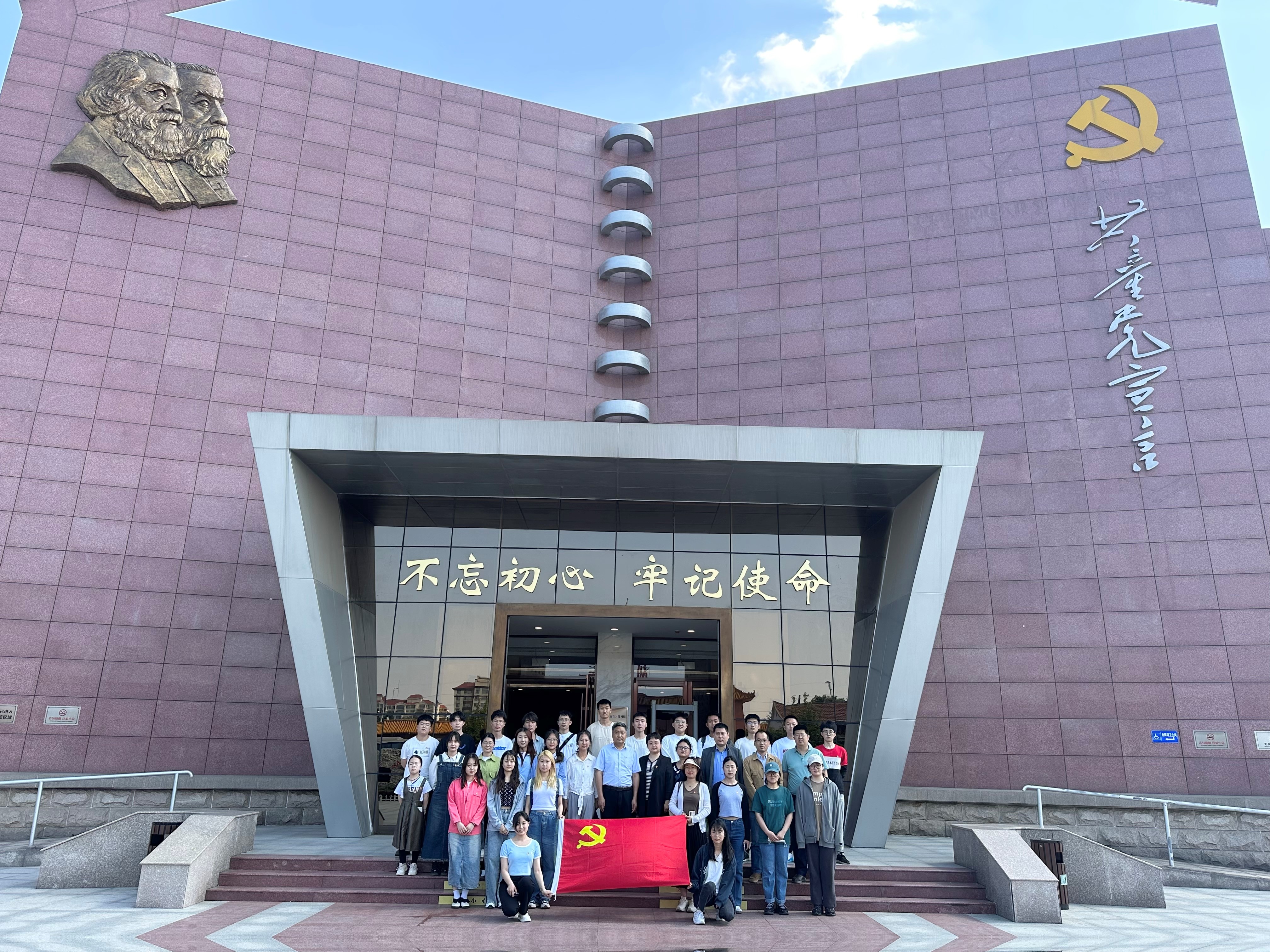 大家第二站来到了位于东营市广饶县大王镇的《共产党宣言》陈列馆。该馆以“信仰的力量”为主题,以《共产党宣言》的诞生、传播、实践、影响、传承发展为主线,记录了中国首版中文译本《共产党宣言》在刘集村传播、使用和保存的艰辛历程,讴歌了早期革命党人的丰功伟绩。