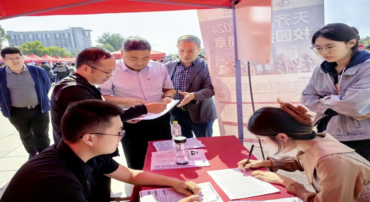 唐传成书记一行走访并参观了现场的企业,并与天元建设集团有限公司、山东天齐置业集团等多家企业进行了进一步的交流,重点了解了各大企业对员工的基本素质要求和具体的人才招聘标准。在此次双选会上,各企业也充分展示了自己在业界的实力与优势,在吸引优秀人才的同时,也为毕业生提供了更多的就业选择。学子们积极地与企业交流沟通,各公司也对学子们的问题进行耐心解答。老师们亲切询问公司参会毕业生的就业意向与求职情况,向毕业生提出相应的就业意见与求职建议,鼓励毕业生勇于尝试,增强就业自信,理性分析个人需求与企业招聘信息的匹配度和一致性,同时希望毕业生能够找到心仪的就业岗位,在新的就业岗位上实现个人价值。秋季就业双选会为青农学子提供了与企业面对面交流的机会,从而让其更加了解自身的就业倾向和选择。