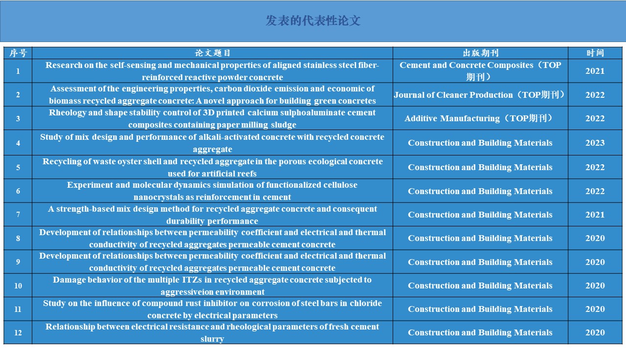 近年来,发表高水平期刊论文200余篇,SCI、EI收录90余篇,其中柳俊哲教授在建筑工程领域国际顶级期刊《Cement and Concrete Composites》发表高性能混凝土方面的重要研究成果;倪松远副教授和陈明旭博士分别在TOP期刊《Journal of Cleaner Production》和《Additive manufacturing》发表低碳生态建筑材料和3D打印建筑材料方面的研究成果。