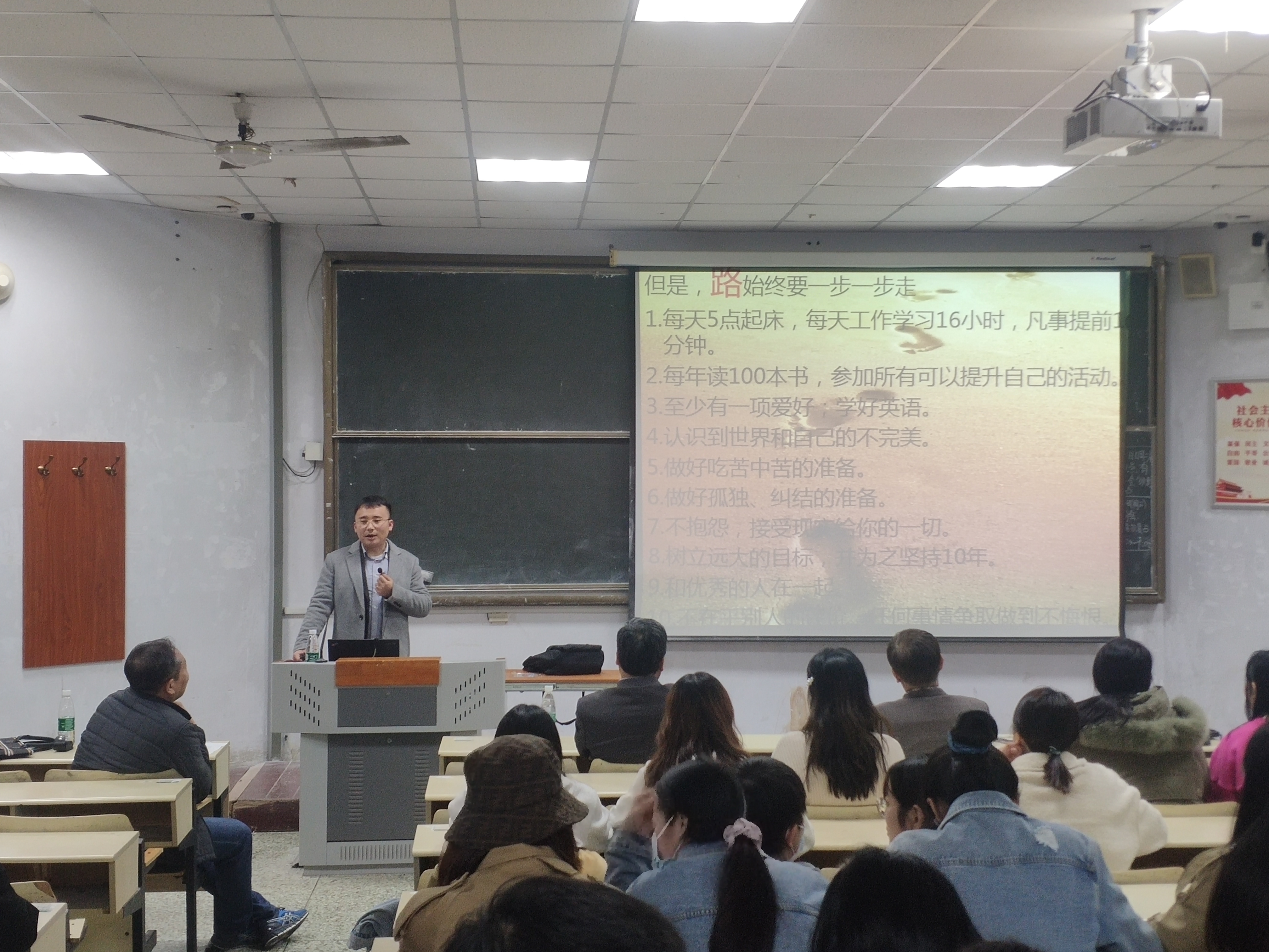 李秋义经理代表公司向员工返校交流表示欢迎,他指出,员工交流活动意在通过身边优秀员工的成长经历,帮助同学们进行自我定位和树立发展目标,通过制定合理规划,把握当下,志存高远。他希望建工学子好好学习,有更加清晰的目标,在不久远的将来得到一份满意的工作。最后,他希望员工们以员工交流活动为契机,加强与公司的联系,常回母校看看,为公司发展献言献策,向公司倾诉心声和愿望。
