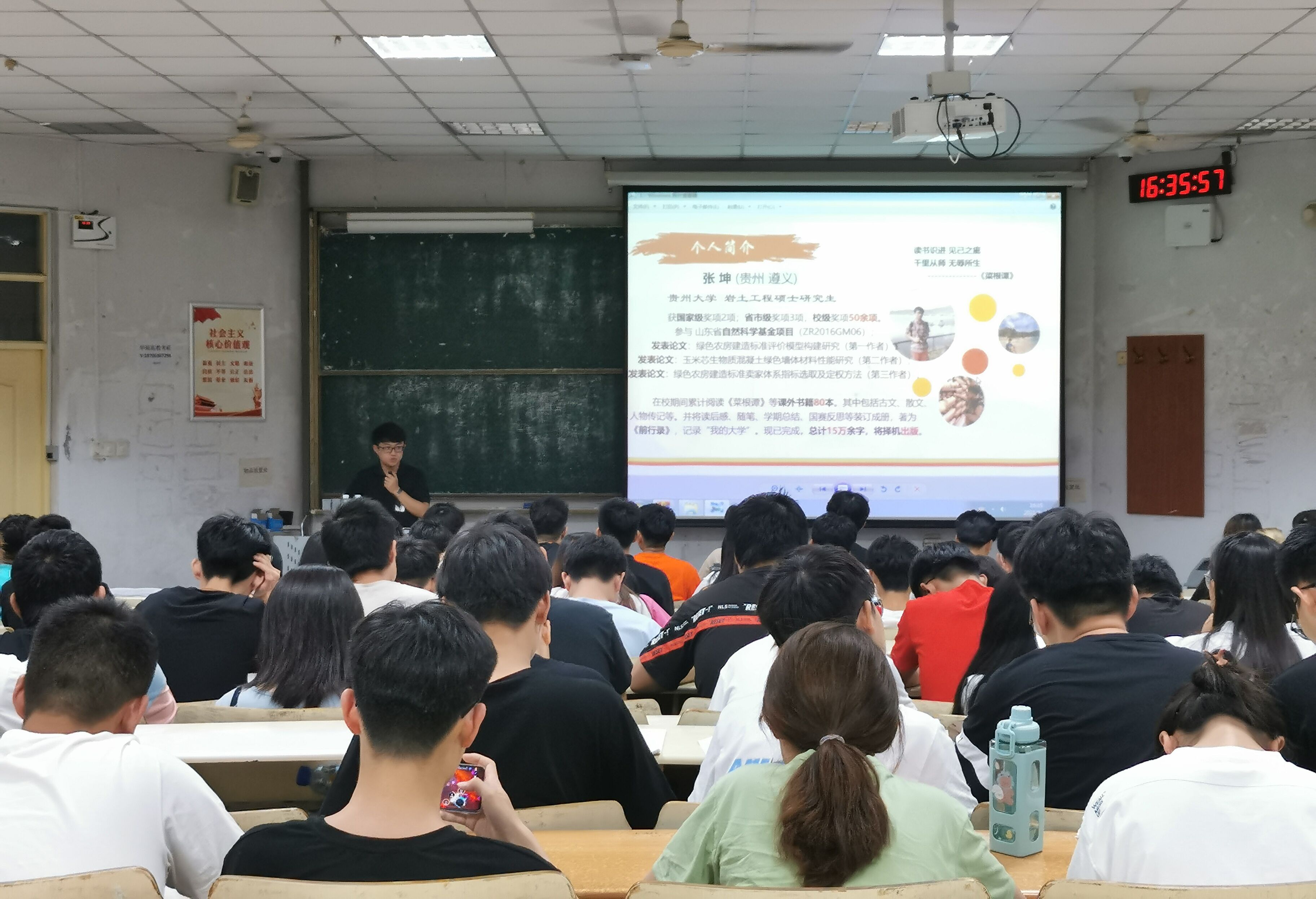张坤为bevictor1946韦德官网土木工程专业的员工,在校期间曾担任团支部书记和学术部副部长等职务,目前于贵州大学就读研究生。张坤从学习、实验研究、生活和未来发展等方面分享经验,与同学们展开深入的交流。活动期间,他以讲故事的方式与图片相结合详细叙述了获得第十届“高教杯”全国老员工先进成图技术与产品信息建模创新大赛和国家级一等奖的实际经历。此外还对结构设计大赛、建筑设计大赛、工程测量大赛等进行详细介绍。同时还介绍了老员工科技创新项目,并以他个人主持项目和毕业设计所研项目为例,介绍了过程中的点滴故事,展示了部分科研成果并以此激励各位积极投身于老员工科技创新项目和专业技能大赛中以丰富自身综合素质。张坤以自身经历建议同学们不可纸上谈兵可以适当参与项目研究,以丰富自己的实践经验,增加实践积累,在锻炼中充实自我,不断提升自我。