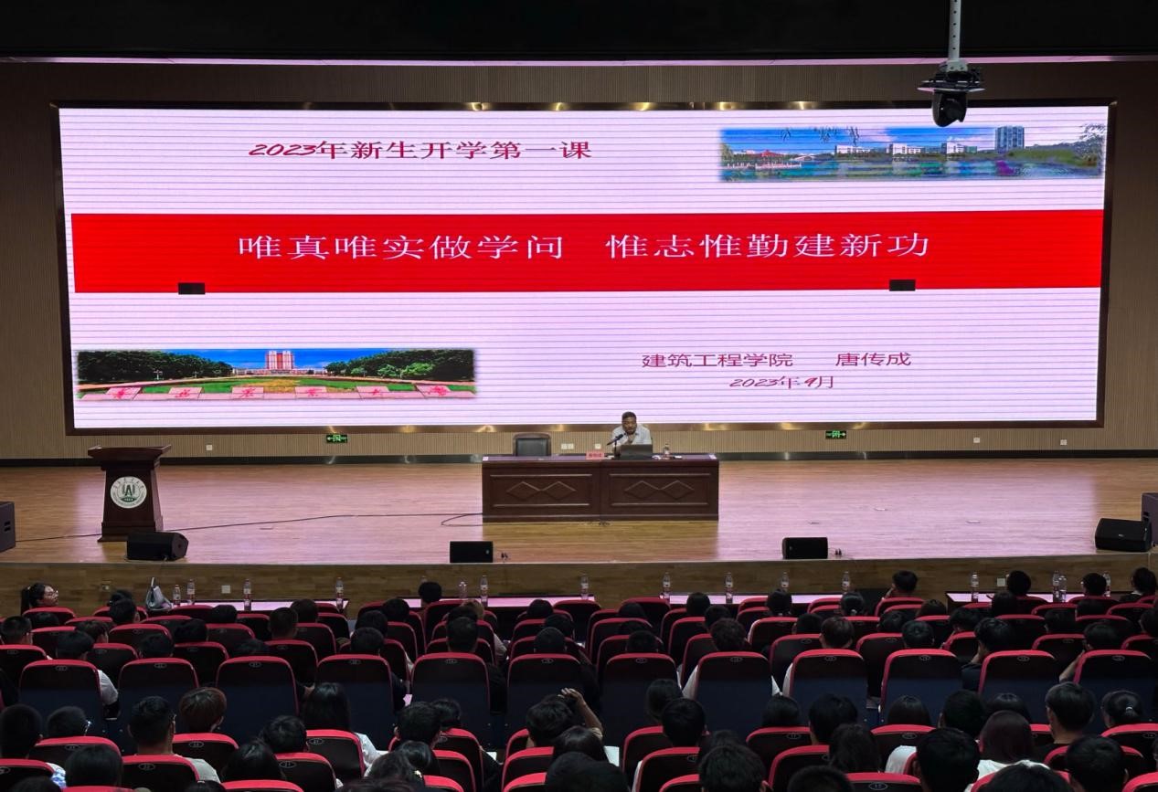 会议中,党委书记唐传成以“唯真唯实做学问,惟志惟勤建新功”为题,从“为何上大学”、“大学学什么”、“怎么上大学”、“青年的责任”四个方面为新讲授了开学第一课。勉励大家要吃苦耐劳,脚踏实地,同时也要求大家要有足够的自身内驱力和创造力,让蓬勃青春与家国情怀同频共振,让青春底色在报国之行中更加鲜艳。