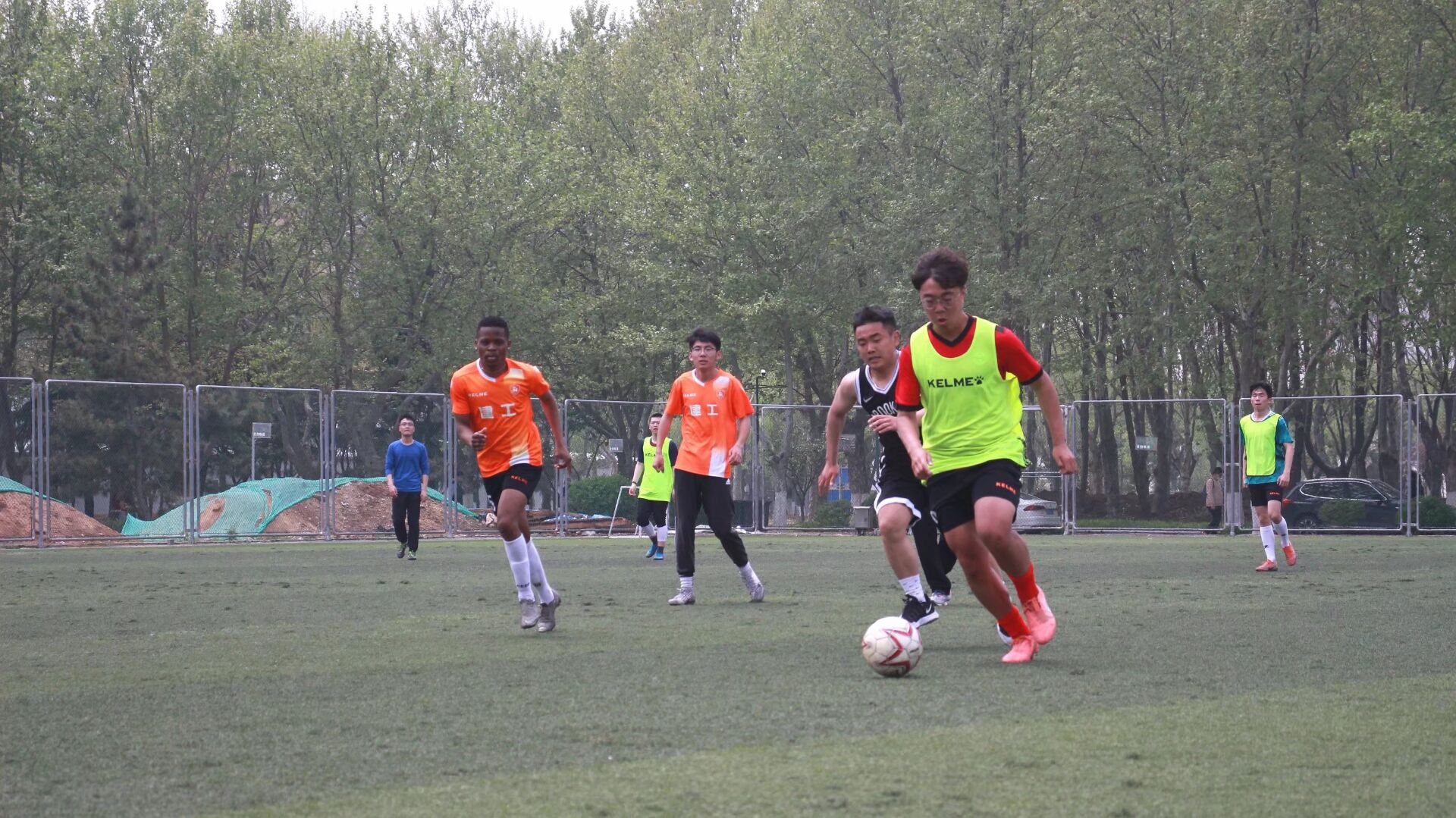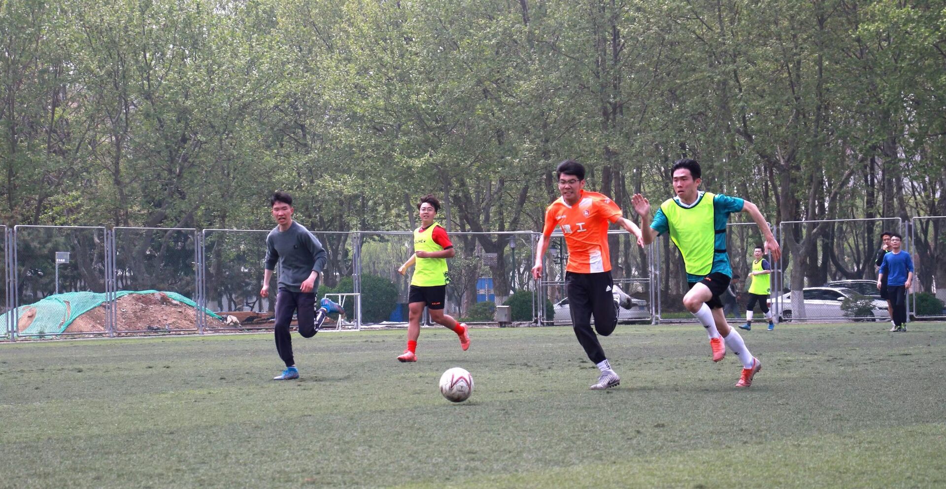 随着主裁判的一声哨响,队员们迅速投入比赛当中,赛场上,每位队员奋力追球,毫不示弱,秉持相互尊重的原则,赛出风格,赛出水平,赛出友谊。本场比赛吸引了众多足球爱好者前来观看,场地周围呼声震天,加油呐喊声此起彼伏,充分体现出了建工公司学子积极向上的青春风采,展示了同学们团结、和谐、勇于拼搏的精神风貌。